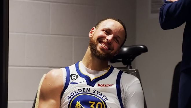 而让球迷更加欣赏这位超巨的,是库里在赛事后接受采访的一幕。