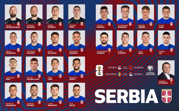 10月4日讯 塞尔维亚国家队公布了新一期大名单,参加对阿尔巴尼亚和安道尔的两场世界杯欧洲区预选赛。